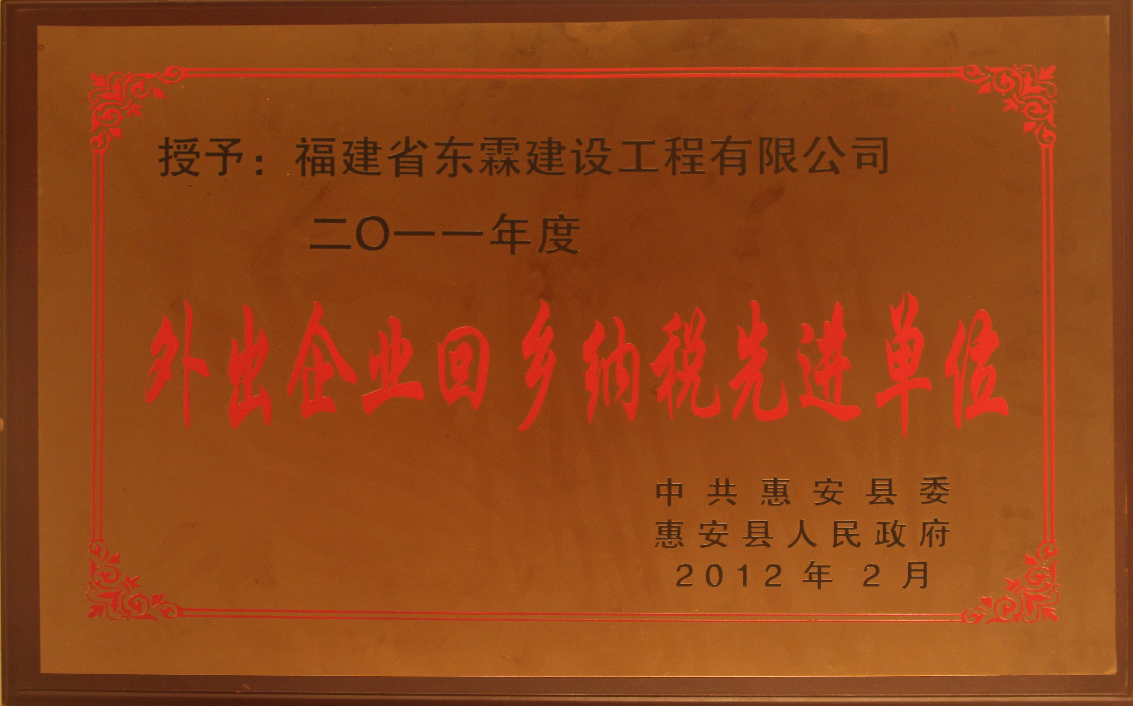 2011年度外出企业回乡纳税先进单位