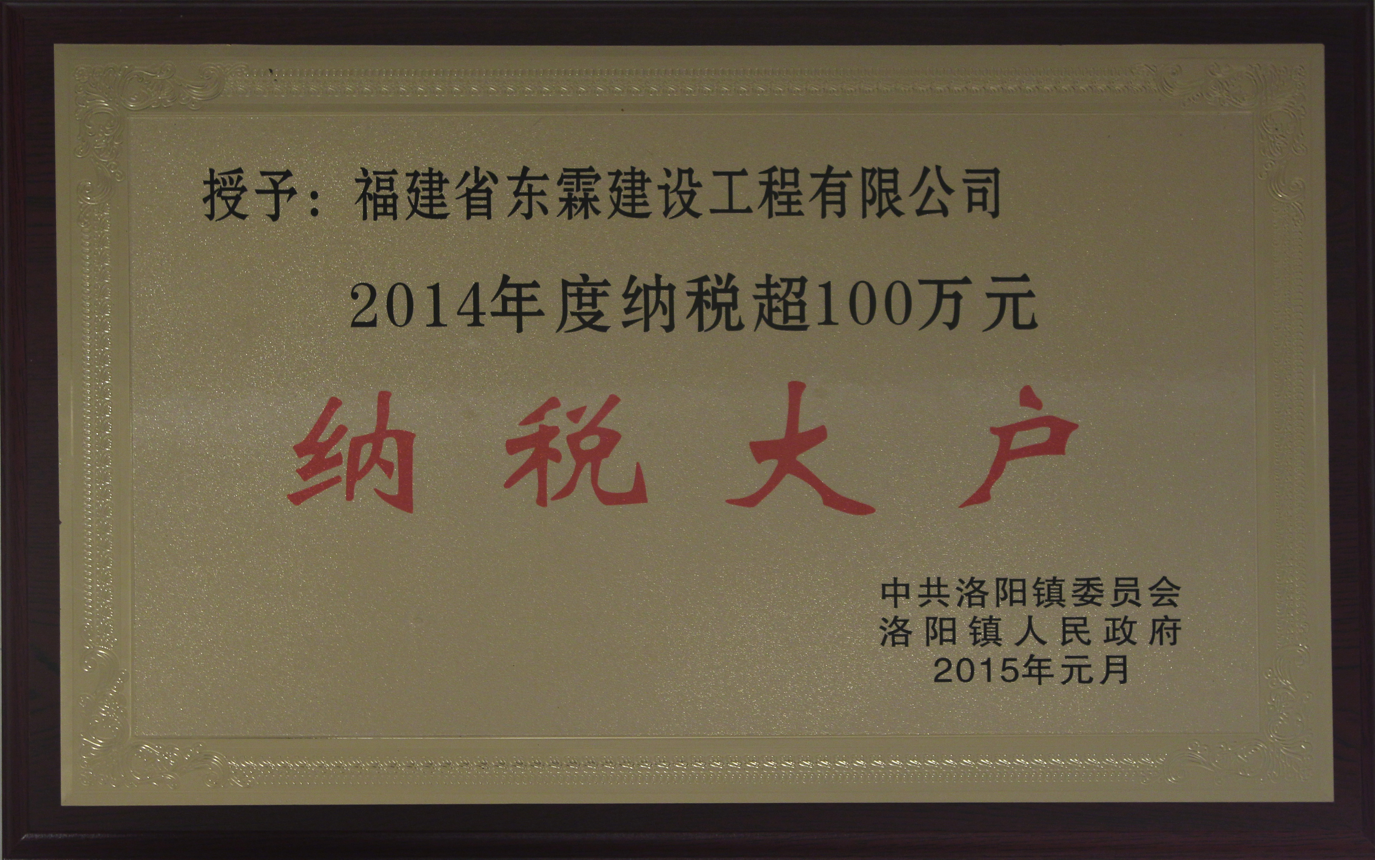 2014年度纳税超100万元纳税大户