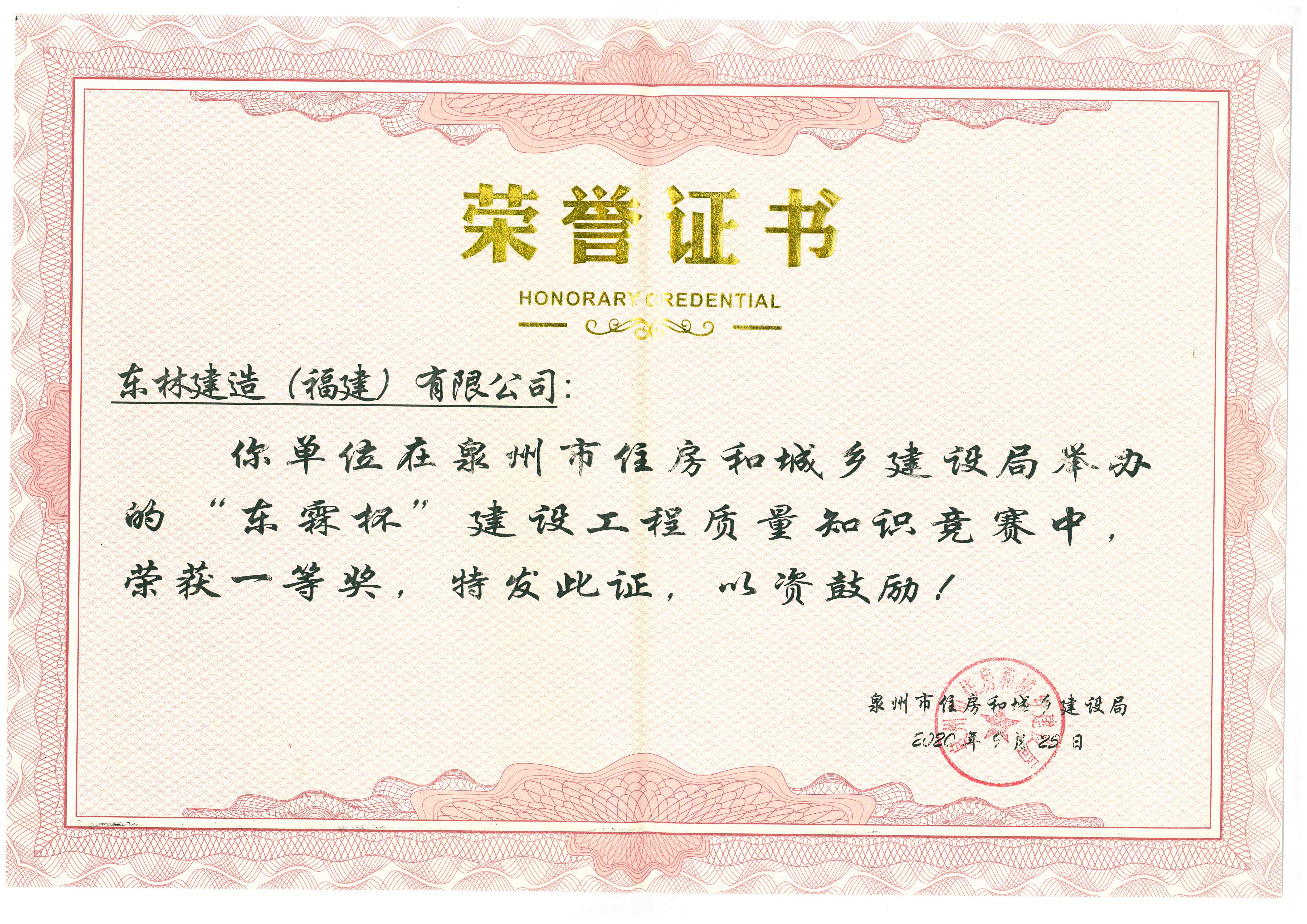 泉州市“东霖杯”建设工程质量知识竞赛一等奖