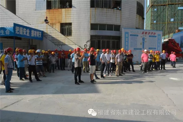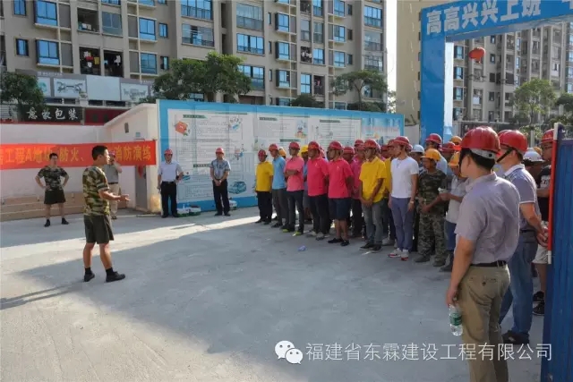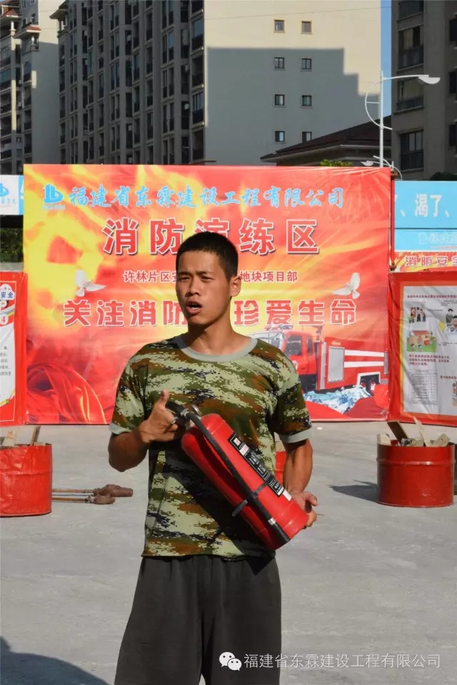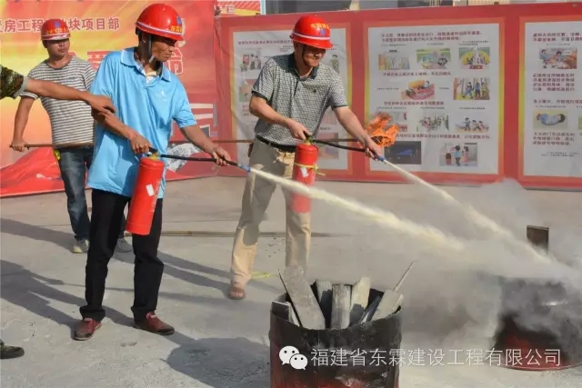 福建东霖建设工程集团于2016年6月22日下午特邀南安市公安消防大队水头中队在许林片区安置房A地块工程项目部举办“关注消防、珍爱生命”为主题的消防演习活动。