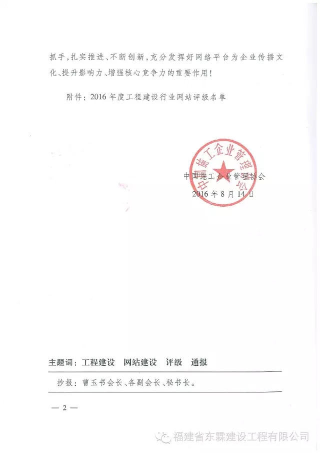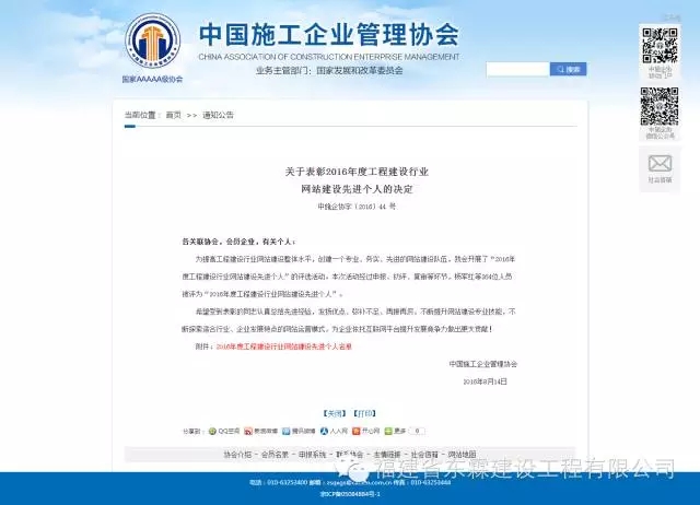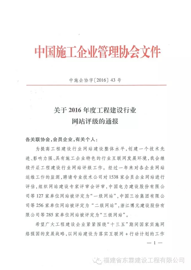欧亿网页版企业网站被评定为“2016年度工程建设行业网站二级网站”