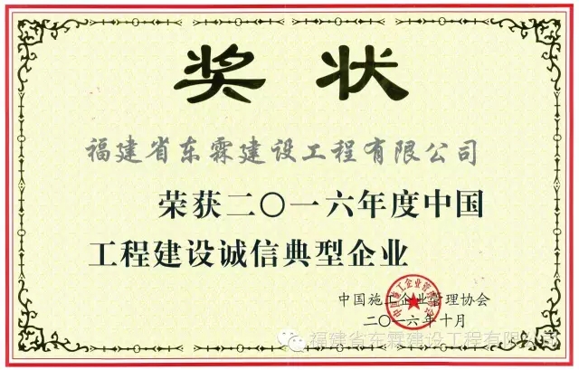 中国施工企业管理协会信用评价工作委员会研究决定,在会议上对全国157家荣获2016年度“工程建设诚信典型企业” 进行了表彰(福建省7家企业获此殊荣)。